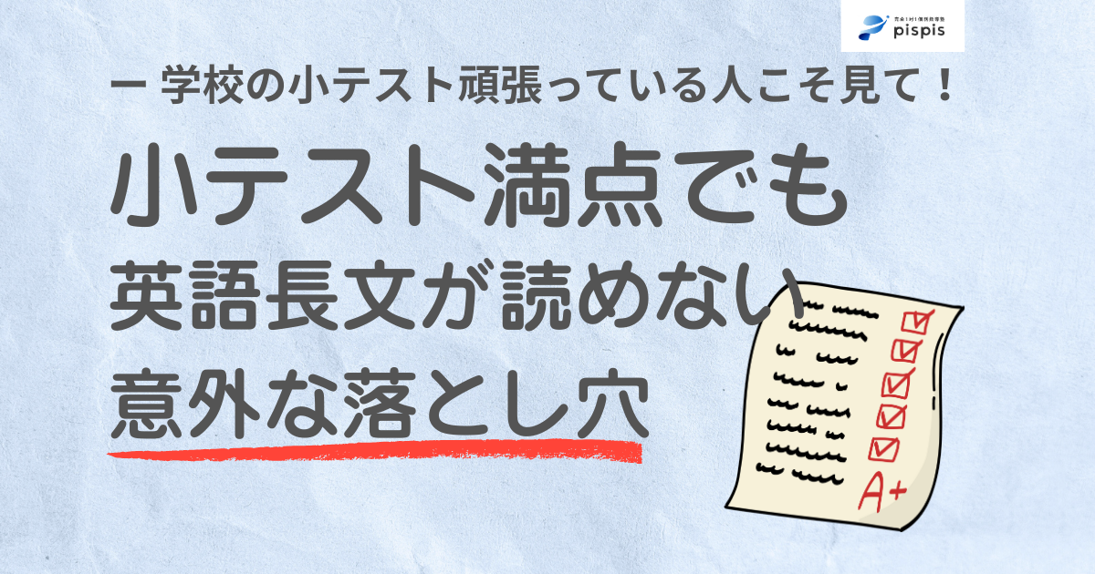 多くの学校では英単語の小テストを実施していて生徒の皆さんも英単語の重要性を理解しているからこそ日々単語暗記を頑張っていると思います。ただ、「学校の小テストでは単語テストの点数が良いのに、英語長文になると全然読めなくて模試でも点数が取れない。」と言った声をとても多くの生徒から聞きます。